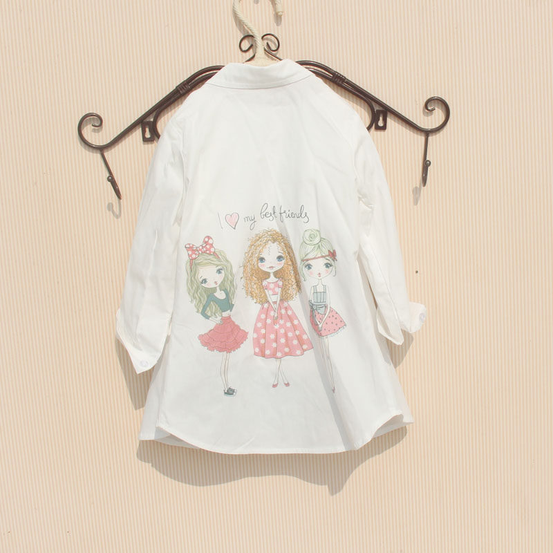 衬衫2021新品春装中大儿童棉衬衣白色女孩卡通数码印花衬衫亲子装热门设计联盟服务商