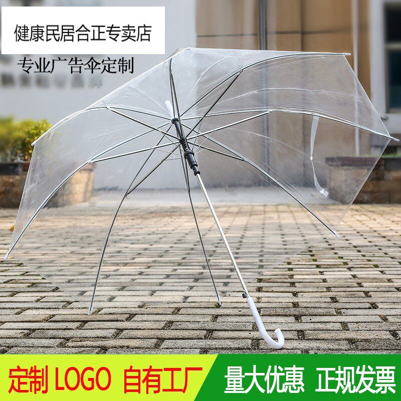 透明雨伞女长柄伞网红学生儿童透明伞直柄小清新广告伞定制印logo热门设计联盟服务商