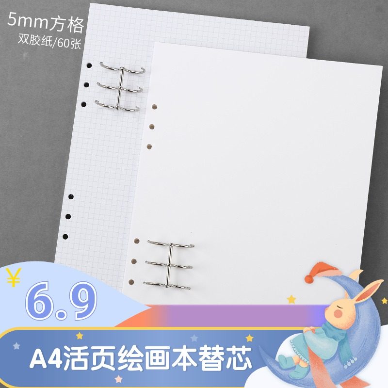 活页素描本活页芯马克笔绘画纸空白牛皮纸黑卡纸速写纸加厚5mm小方格A4纸替芯画画纸绘图纸活页扣可拆卸16k热门设计联盟服务商
