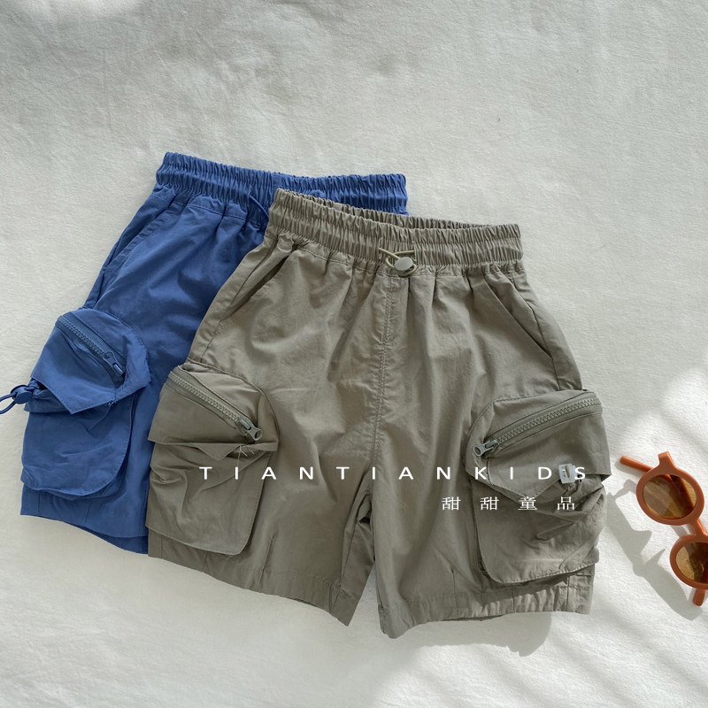 儿童韩版纯色拉链口袋中裤男童2022夏季新款女宝纯棉速干裤工装裤热门设计联盟服务商