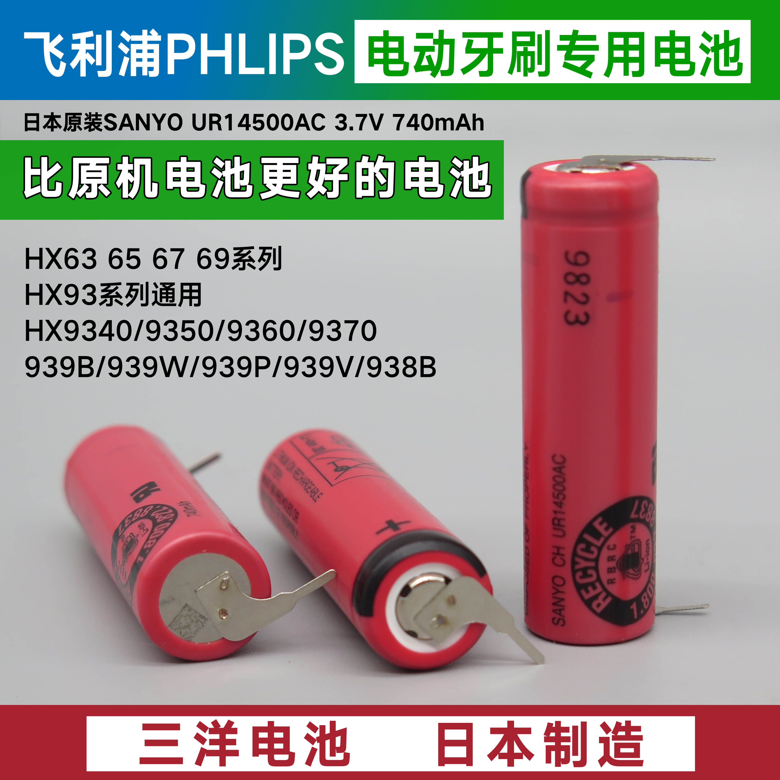 飞利浦电动牙刷HX93系列专用电池 9340 9350 9360 HX63 65 67 69热门设计联盟服务商