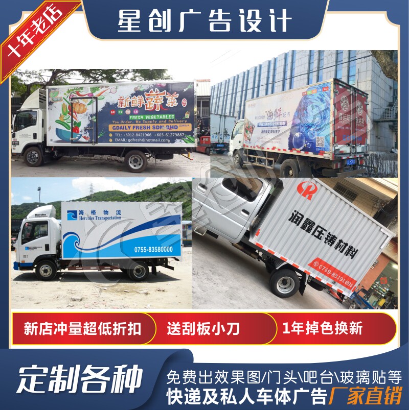 货车轿车面包车栏板车体广告车贴汽车车身贴纸定制设计喷绘镂空字热门设计联盟服务商