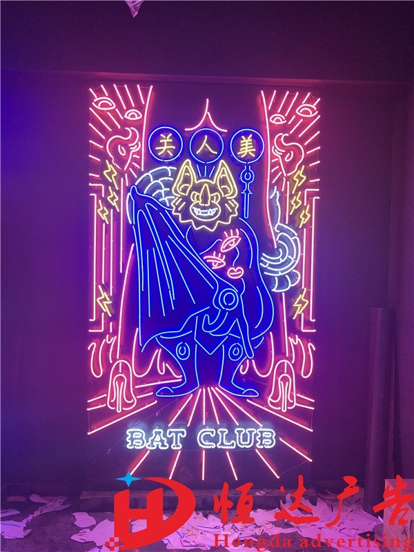 酒吧ins玻璃千层多层LED霓虹灯背景墙店招牌广告牌设计订定制安装热门设计联盟服务商