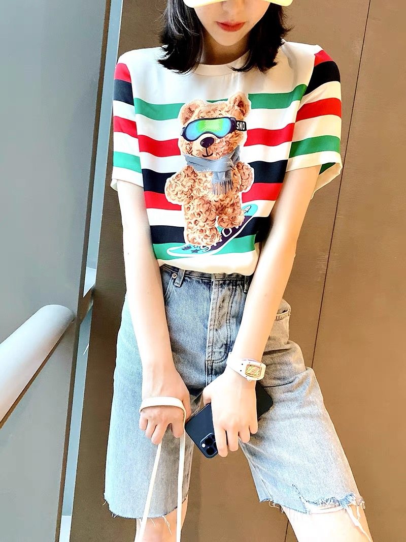 2021新款卡罗碧【专柜正品】刘纯服饰小熊条纹T恤气质文化衫热门设计联盟服务商