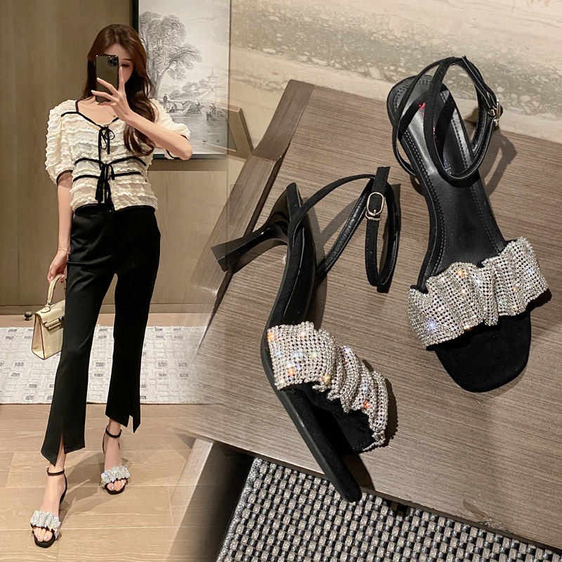 款一字扣露趾细跟水钻凉鞋女2021年夏季新款仙女风设计感高跟鞋热门设计联盟服务商