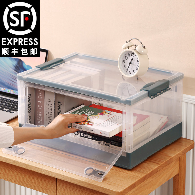 可折叠书籍收纳箱学生装书本大号家用透明储物箱塑料整理盒侧开门热门设计联盟服务商