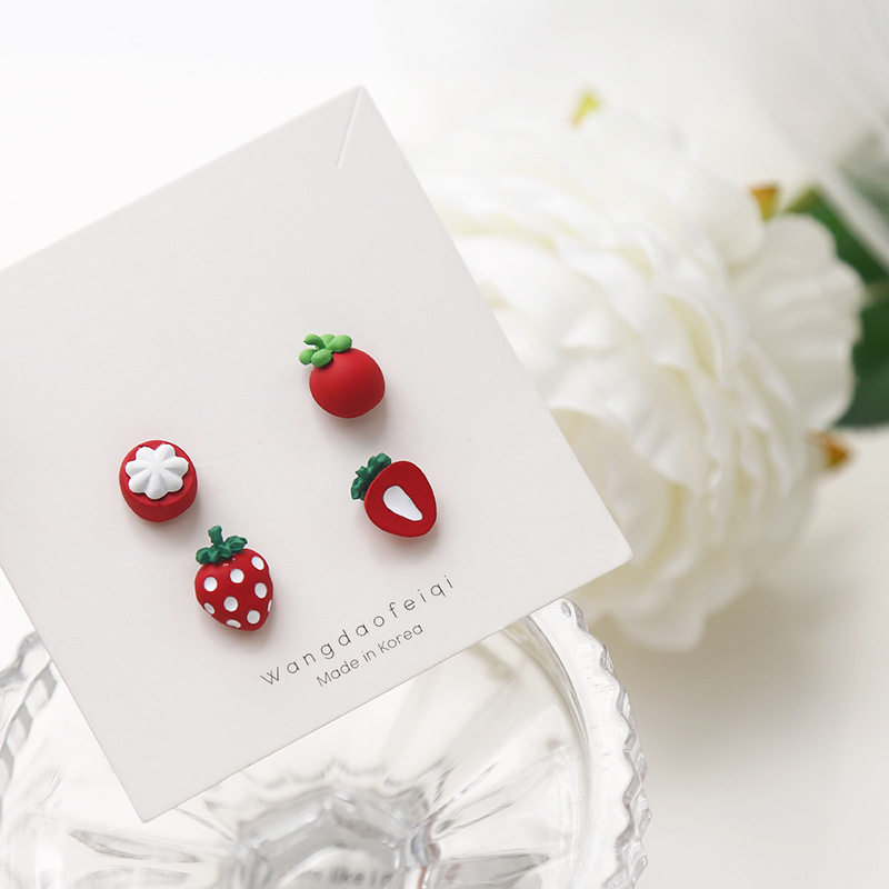 S925银针趣味设计感山竹耳钉不对称草莓水果耳环可爱少女迷你耳饰热门设计联盟服务商