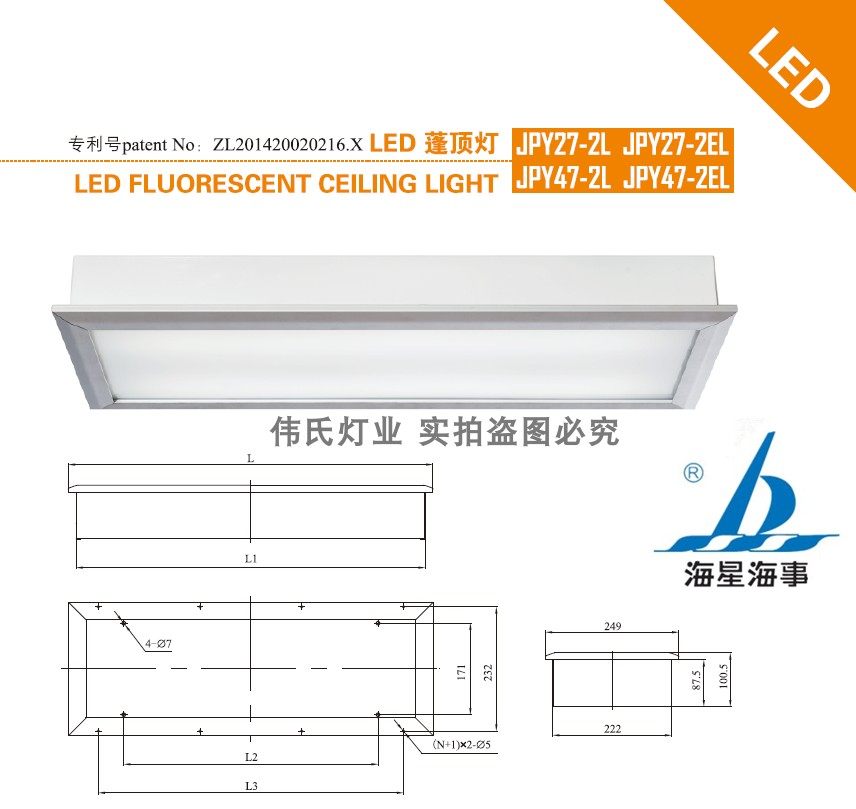 海星海事船用舱室居住餐厅驾驶室双管LED篷顶灯JPY27/47-2L/2EL热门设计联盟服务商