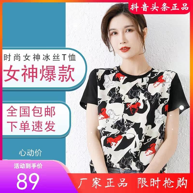 霜昕服饰店2021夏季新款时尚女神冰丝T恤百搭薄圆领短袖上衣热门设计联盟服务商