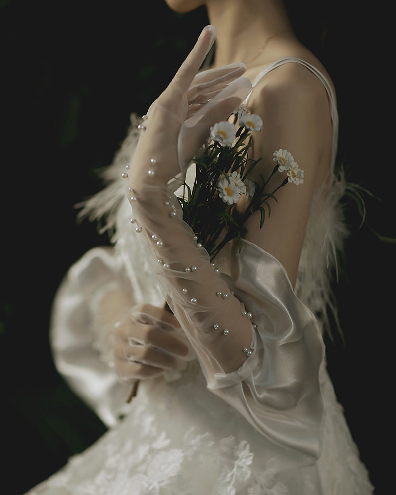 出游新娘结婚礼仪手套婚纱礼服钉珠手套摄影拍照缎布拼接1结热门设计联盟服务商