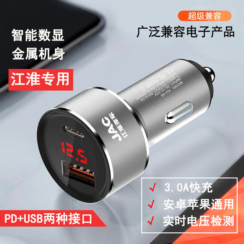 江淮车载充电器安卓苹果通用PD+USB双接口点烟器车载智能数显快充热门设计联盟服务商