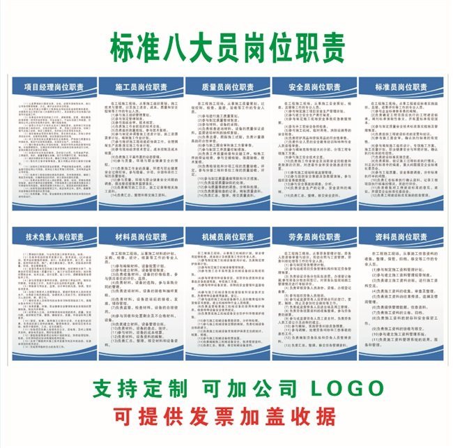 建筑工地施工制度牌 八大员岗位职责 五牌一图安全警示kt板广告牌热门设计联盟服务商