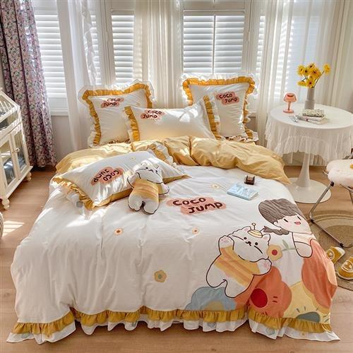 卡通风全棉水洗棉四件套超萌刺绣儿童女孩公主可爱鸭被套床单热门设计联盟服务商