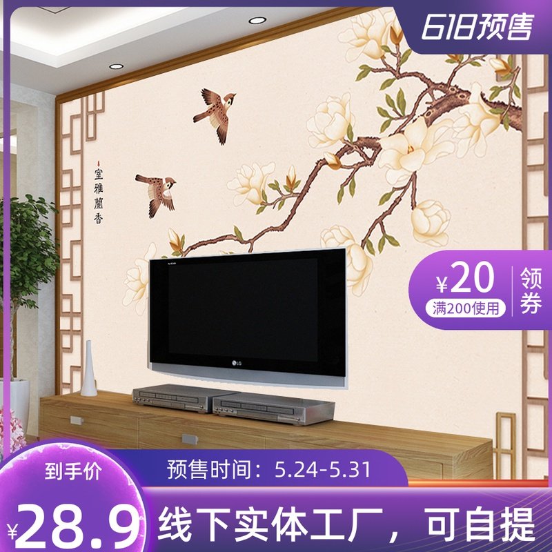 电视背景墙壁纸装卧室饰客厅5D影视墙纸家用8D墙布风景壁画新中式热门设计联盟服务商