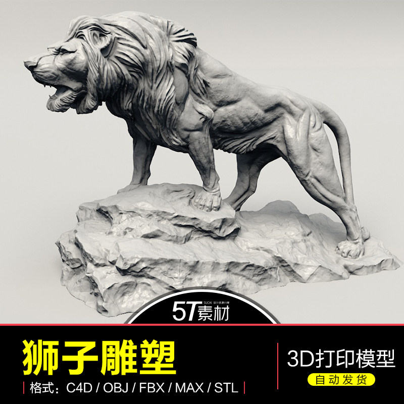狮子雄狮雕塑3D打印模型C4D OBJ FBX STL MAX格式模型素材 D241热门设计联盟服务商