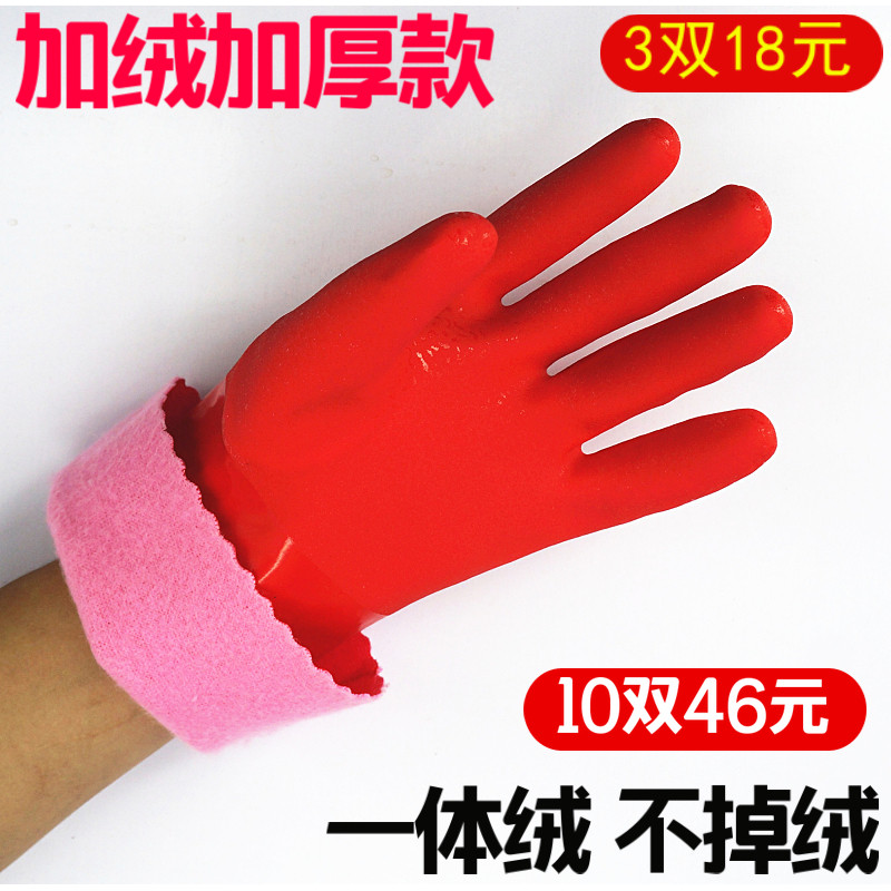 加厚短款冬季保暖橡胶防水一体绒洗衣碗耐磨工业加绒塑胶家务手套热门设计联盟服务商