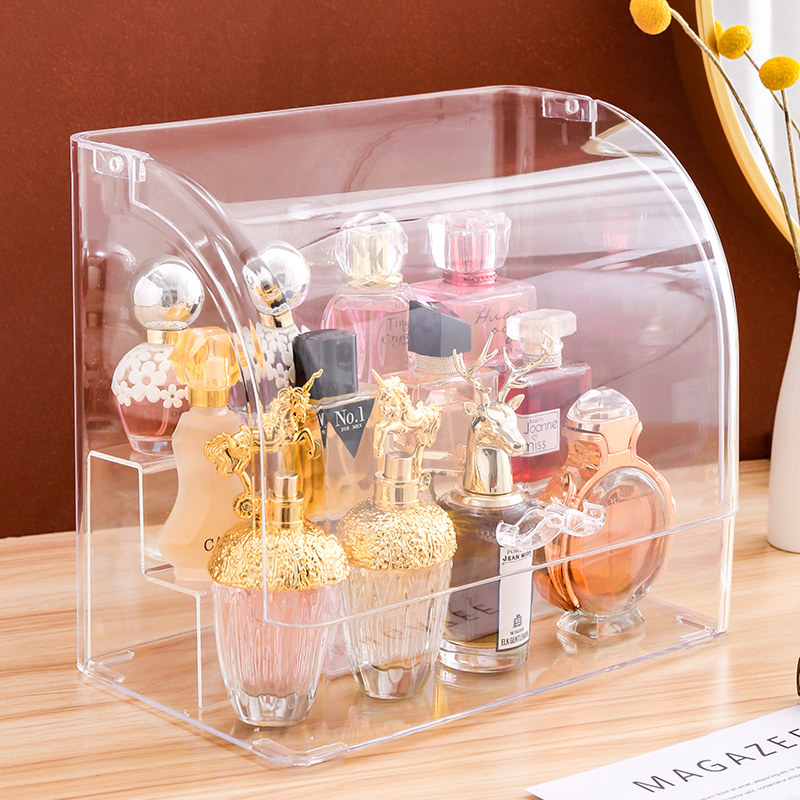 香水收纳盒亚克力桌面透明化妆品置物架阶梯型防尘香水架子展示柜热门设计联盟服务商