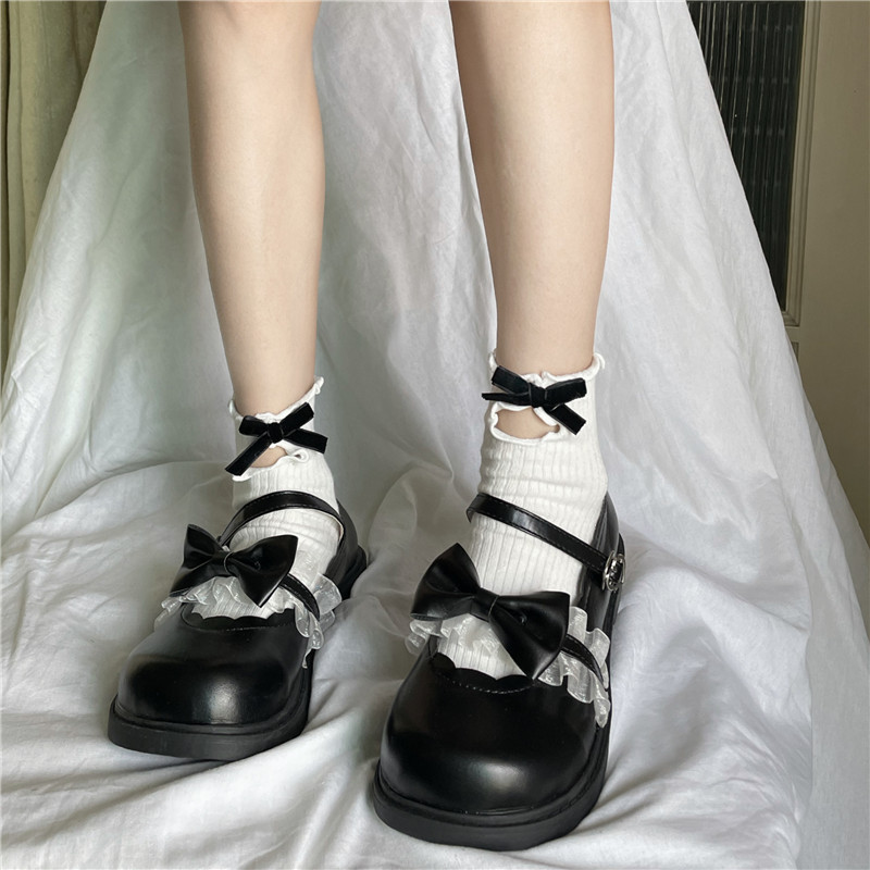吾等是猫 镂空蝴蝶结短袜女黑白甜美法式复古可爱镂空设计袜子热门设计联盟服务商