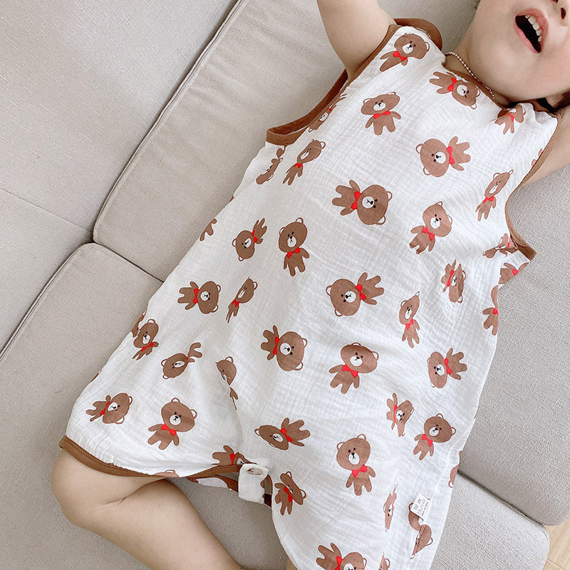 宝宝纯棉纱布连体睡衣男童卡通睡袍女童无袖马甲连体衣分腿防踢被热门设计联盟服务商
