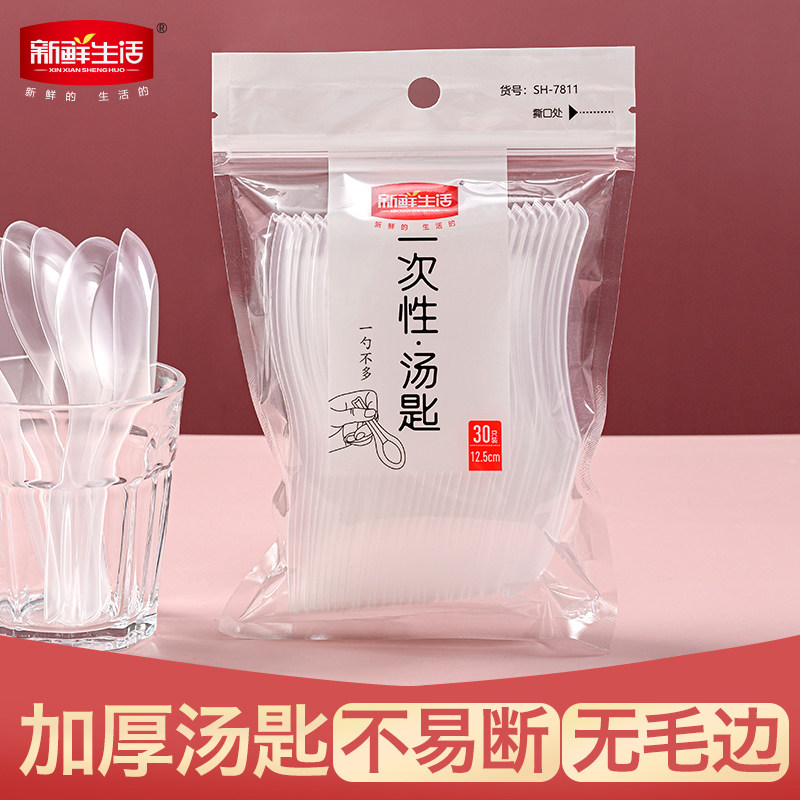 新鲜生活聚餐一次性勺子塑料汤勺外卖甜品小勺打包调羹商用汤匙热门设计联盟服务商