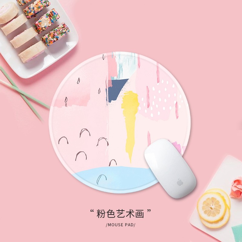 鼠标垫中小号圆形个性文艺24cm创意水彩艺术女生定制电脑布面胶垫热门设计联盟服务商