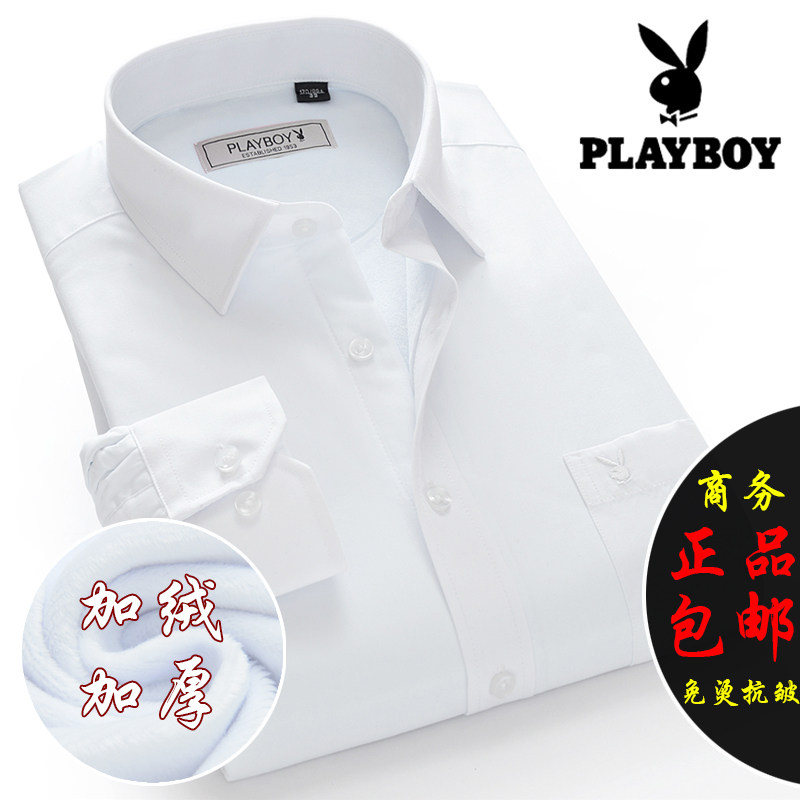 花花公子保暖衬衫冬季男士长袖衬衣加绒加厚商务正装中年白色全棉热门设计联盟服务商