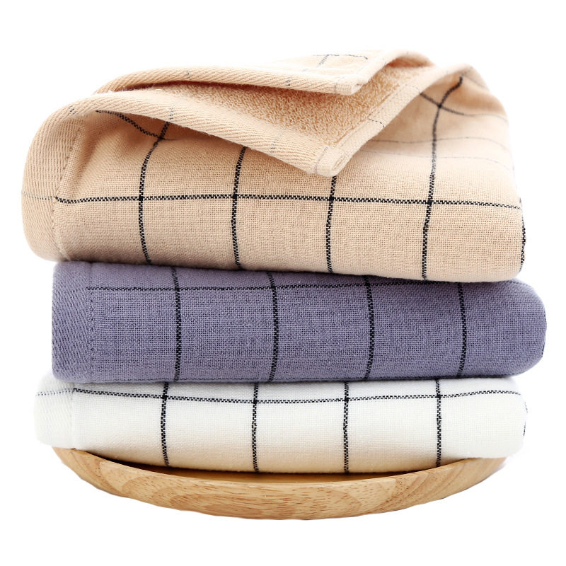 纯棉田园方格毛巾正面纱布方面毛圈毛巾成人美容面巾免费设计LOGO热门设计联盟服务商