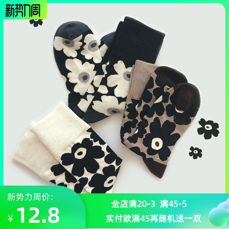 三色满印泫雅花朵中筒袜子ins风可爱IU少女艺术日系原创堆堆袜热门设计联盟服务商