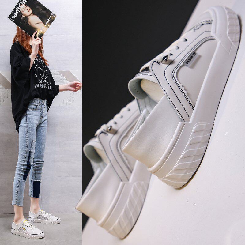 小白鞋女厚底2022年春季季平底休闲漫画风前系带懒人鞋品牌款单热门设计联盟服务商