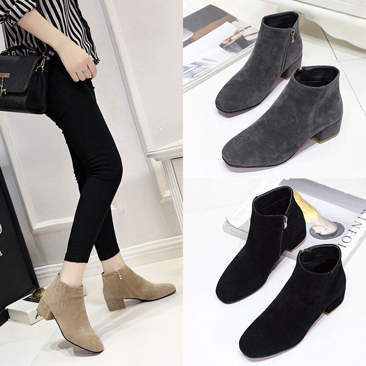 短靴靴4厘米粗跟圆头2017新款百搭商务高跟靴女黑色正装韩版热门设计联盟服务商