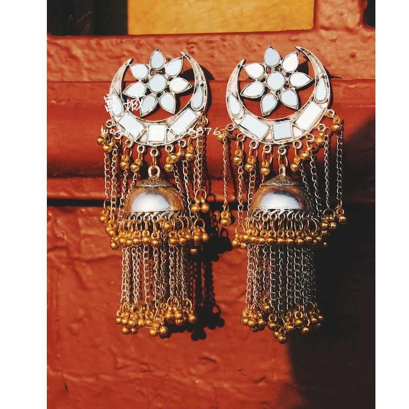 印度镜片流苏灯笼鸟笼耳环 舞台婚纱摄影耳环热门设计联盟服务商