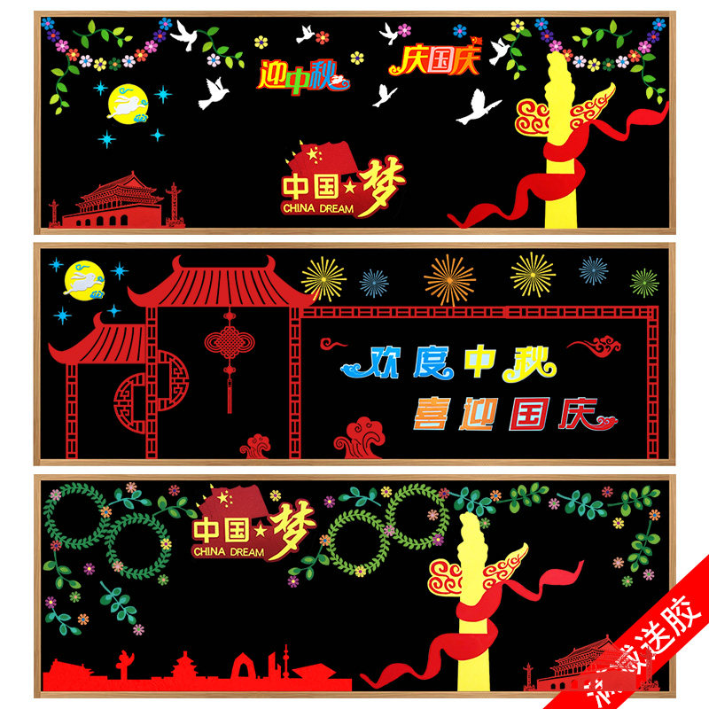 欢度中秋国庆节主题黑板报装饰墙贴画教室布置文化墙中小学幼儿园热门设计联盟服务商