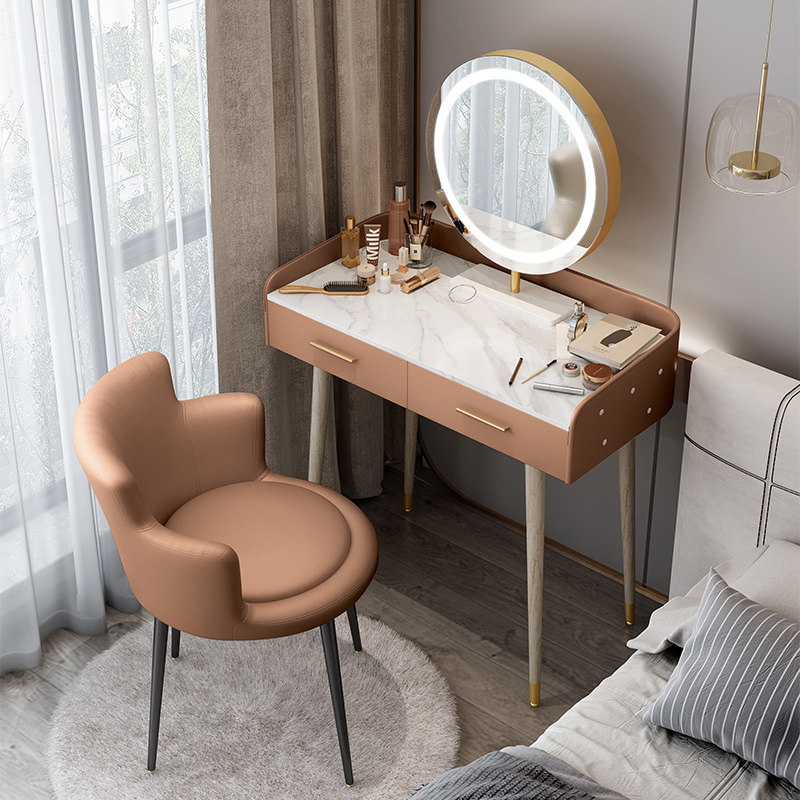 北欧小型轻奢高级梳妆台ins风卧室现代简约白色岩板设计师化妆桌热门设计联盟服务商