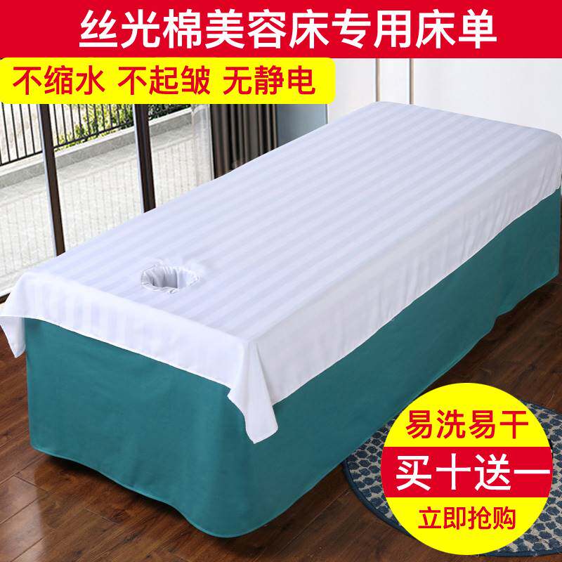 美容院专用床单带洞丝光棉涤棉半棉抗皱白色床单按摩推拿SPA会所热门设计联盟服务商