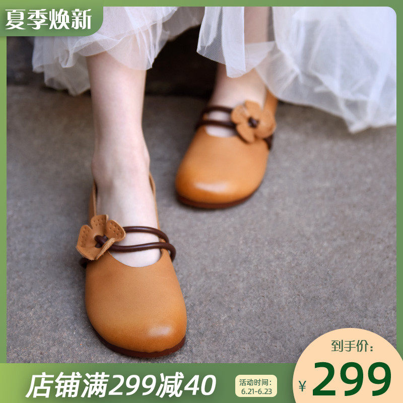 Artmu阿木原创鞋子小众设计森系花朵单鞋女平底软底豆豆鞋真皮热门设计联盟服务商