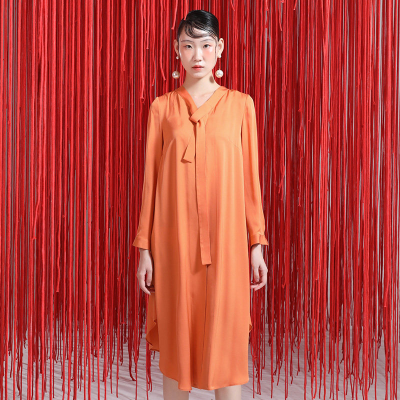 台绣艺术空间2021年新款真丝长衬衫飘带设计纯色宽松桑蚕丝中长裙热门设计联盟服务商