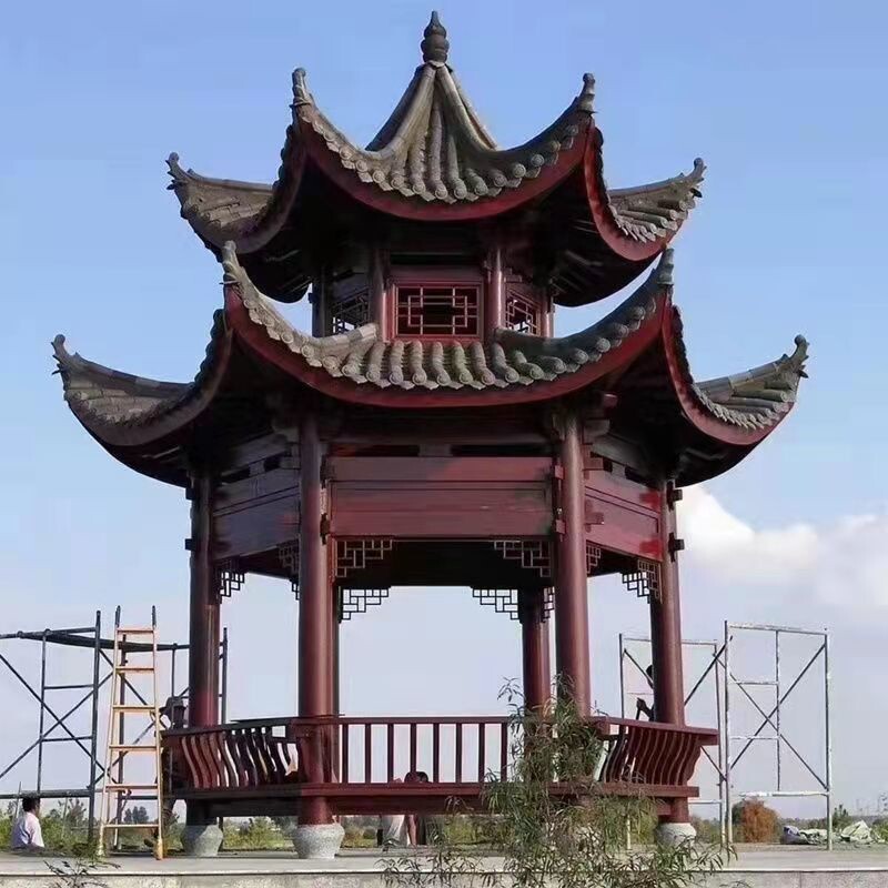 古建凉亭六角八角双层亭子古建长廊菠萝格凉亭户外庭院厂家直销