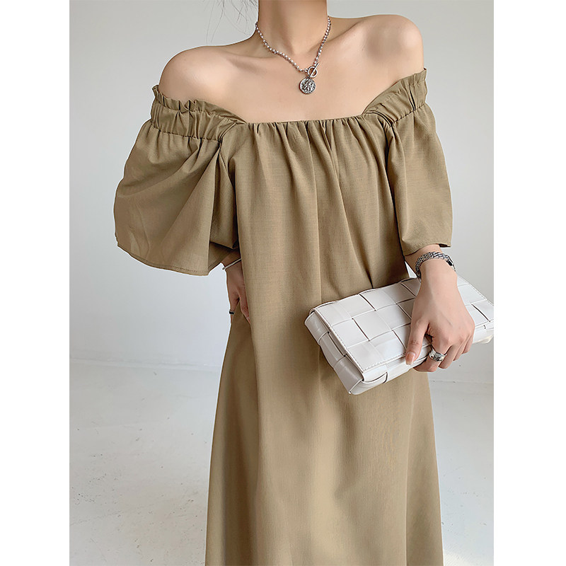 凉小姐自造 连衣裙夏季女2021锁骨一字肩设计感高级方领裙子长裙热门设计联盟服务商