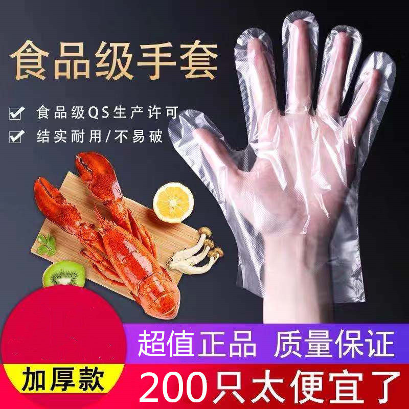 200只一次性薄膜PE手套食品级加厚透明餐饮厨房洗碗小龙虾热门设计联盟服务商