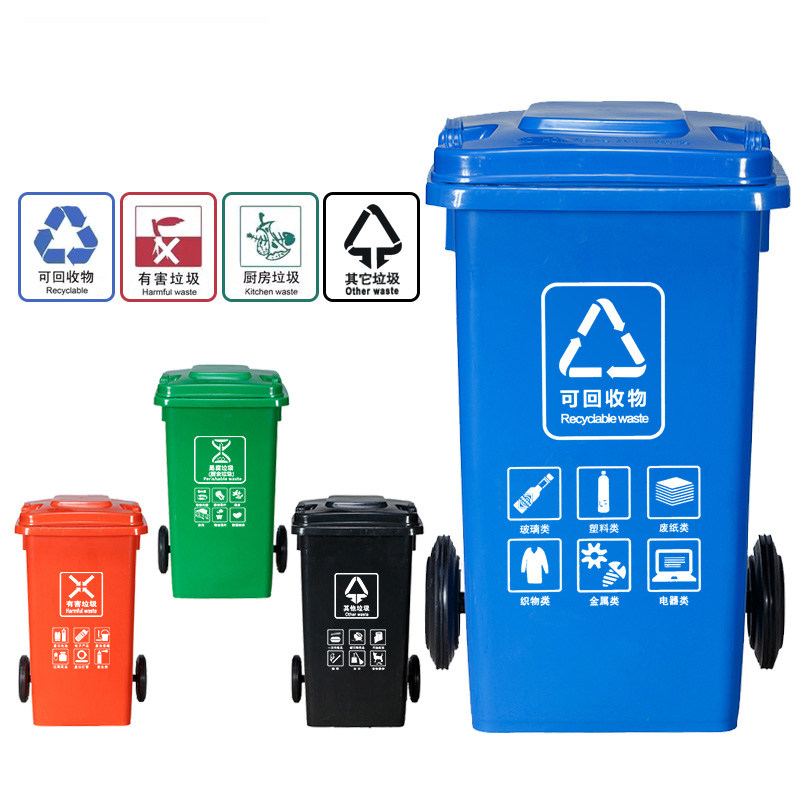 100L分类户外大型带轮垃圾桶可回收其他垃圾别墅街道园林商务生活热门设计联盟服务商