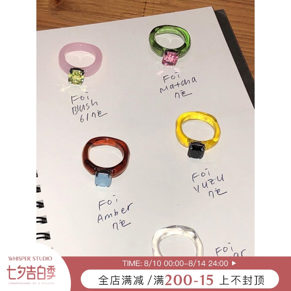 包邮ylyl小众设计夏日彩色树脂亚克力宝石戒指透明果冻质感指环热门设计联盟服务商
