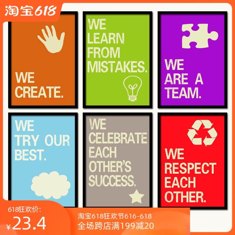励志英文彩色装饰画企业公司挂画团队学校墙画办公室标语有框壁画热门设计联盟服务商